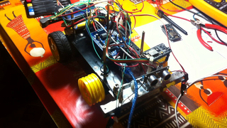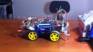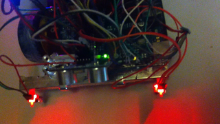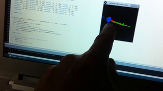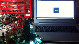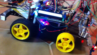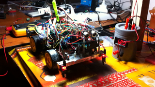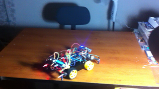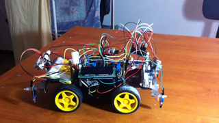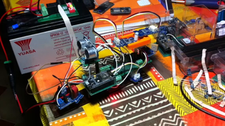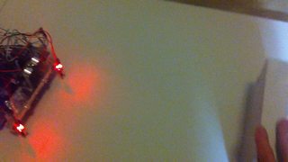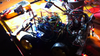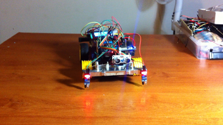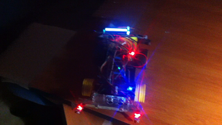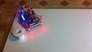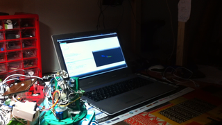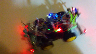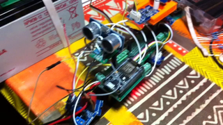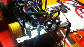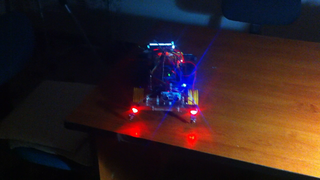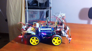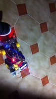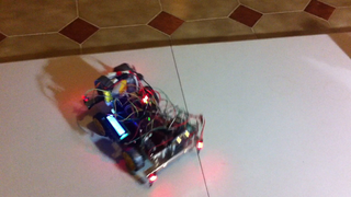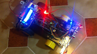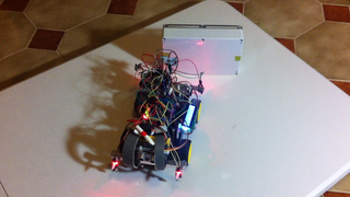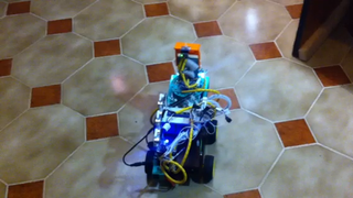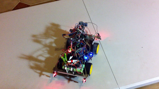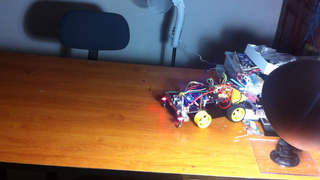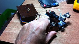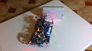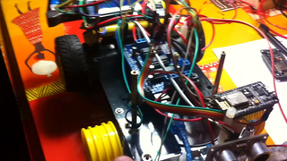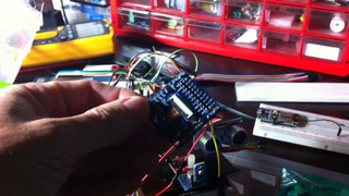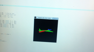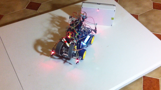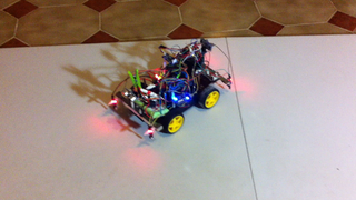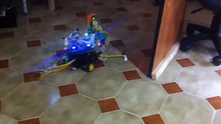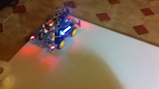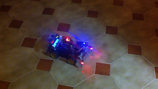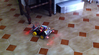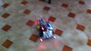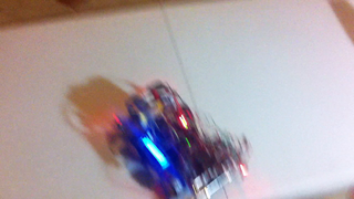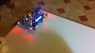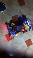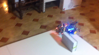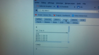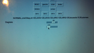 Il bouge et obéit à la télécommande wifi depuis le mobile Sur le PC par un autre lien wifi on voit la projection pseudo 3d du scan des radars et de l'horizon artificiel | ![]() ![]() ![]() ![]() | |